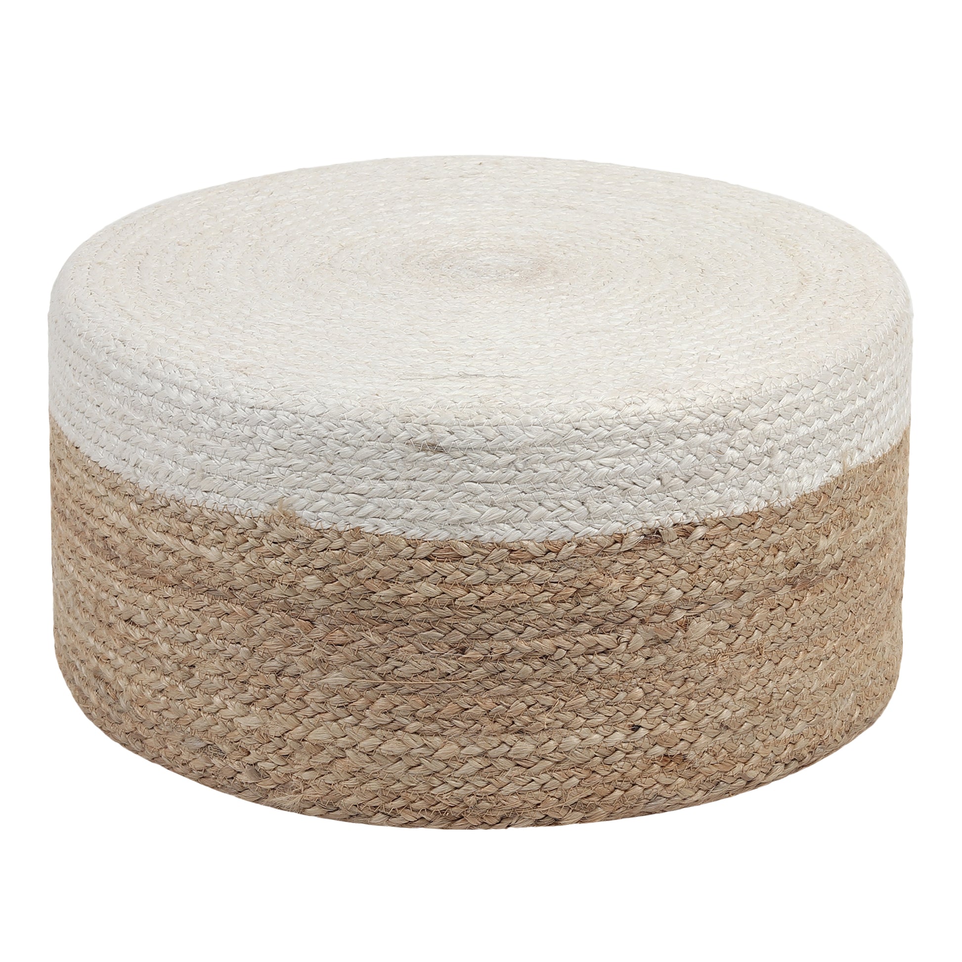 Introducing our elegant Jute Pouf, a charming addition to your living space that exudes timeless class and sophistication. Crafted with meticulous attention to detail, this exquisite pouf features a delicate white top that beautifully complements its natural jute base. Standing 12 inches high and measuring 19 inches in diameter, it effortlessly combines style and functionality, offering versatile seating or a stunning accent piece. Whether used as an extra seat for guests or as a stylish footrest in your favorite reading nook, this pouf adds a touch of understated luxury to any room. Indulge in the luxurious comfort of our Jute Pouf, designed to elevate your home decor with its refined aesthetic and exceptional craftsmanship. Made from premium-quality jute material, this pouf offers both durability and exquisite texture, while its soft white top provides a serene contrast that enhances its visual appeal. Its compact size and lightweight design make it easy to move around, allowing you to effortlessly create cozy seating arrangements or elevate the style of any space. With its timeless elegance and versatile functionality, our Jute Pouf is the perfect choice for discerning homeowners seeking to infuse their interiors with sophistication and charm.