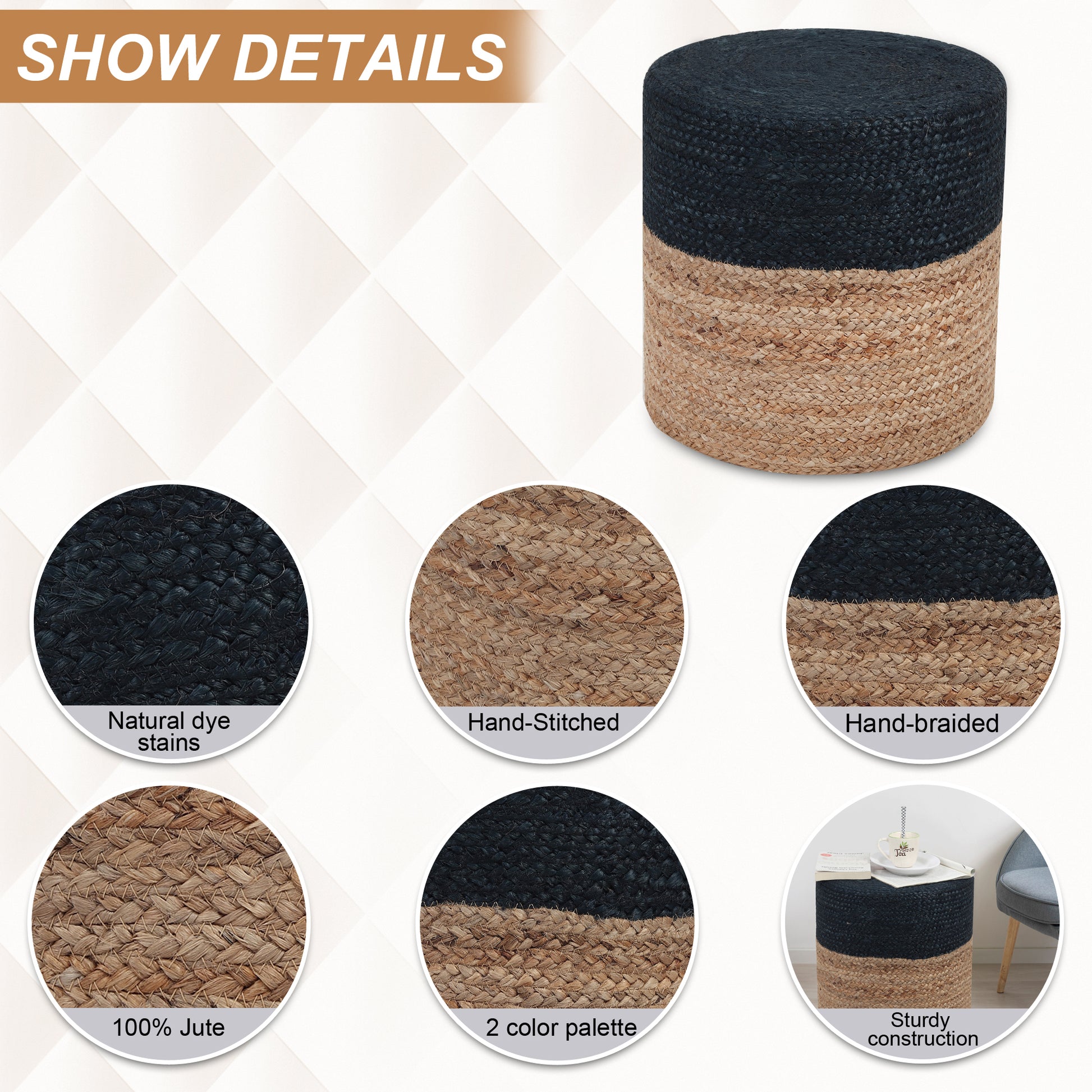 Introducing our luxurious Jute Pouf, a chic and versatile addition to your living space. Crafted with meticulous attention to detail, this exquisite pouf effortlessly combines style and functionality. Featuring a sleek black top and meticulously woven jute sides, it exudes sophistication and adds an element of understated elegance to any room. Perfectly sized at 16 inches high and 16 inches round, this pouf offers both comfort and versatility, serving as a stylish footrest, additional seating option, or even as a unique accent piece. Elevate your home decor with this timeless and versatile accessory that promises to enhance the ambiance of your living space with its classic charm.